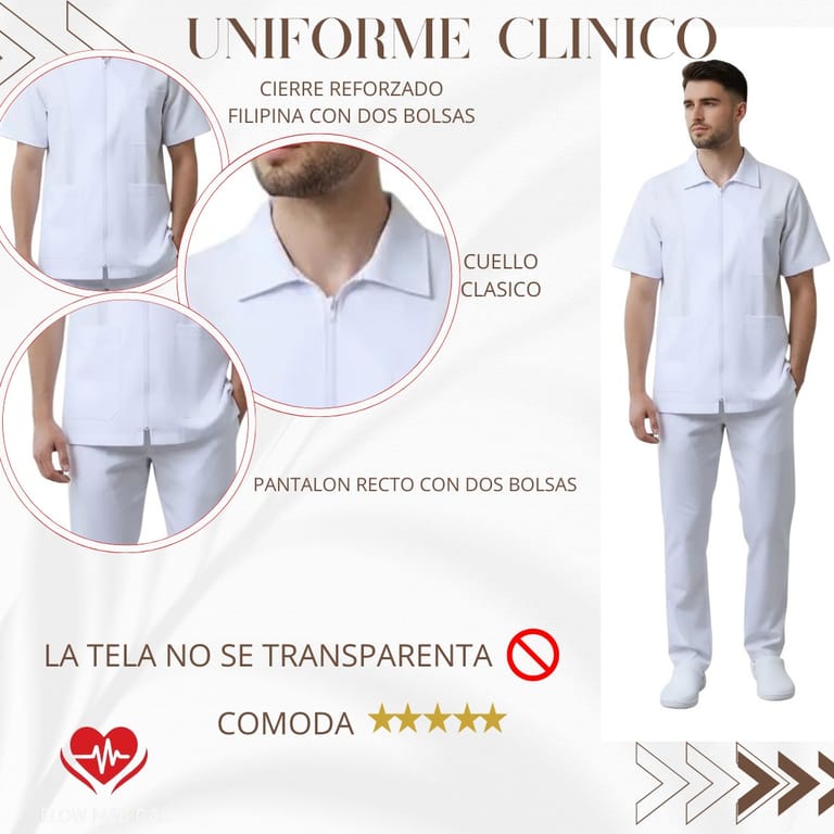 Descubre nuestro uniforme Clínico, diseñado especialmente para brindarte comodidad y estilo durante tus largas jornadas en hospitales o clínicas. El conjunto incluye una camiseta de manga corta y pantalones con cárdigan prácticos con bolsillos amplios, confeccionados en una tela ligera, resistente y de fácil cuidado. Disponible en varias tallas, este uniforme está pensado para acompañarte en tu día a día, facilitando movimiento y manteniéndote fresco. ¡Renueva tu imagen profesional con calidad y funcionalidad!