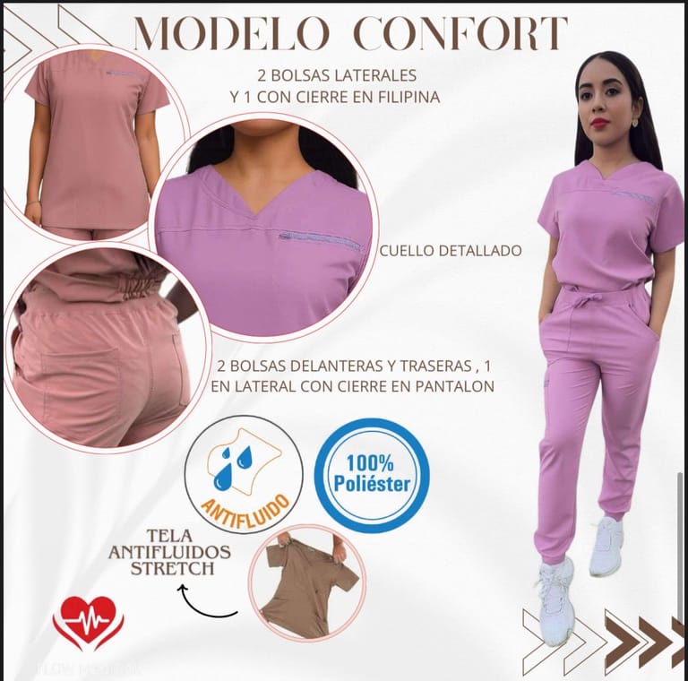 Descubre nuestro uniforme Confort profesional , diseñado especialmente para brindarte comodidad y estilo durante tus largas jornadas en hospitales o clínicas. El conjunto incluye una camiseta de manga corta y pantalones con cárdigan prácticos con bolsillos amplios, confeccionados en una tela ligera, resistente y de fácil cuidado. Disponible en varias tallas, este uniforme está pensado para acompañarte en tu día a día, facilitando movimiento y manteniéndote fresco. ¡Renueva tu imagen profesional con calidad y funcionalidad!